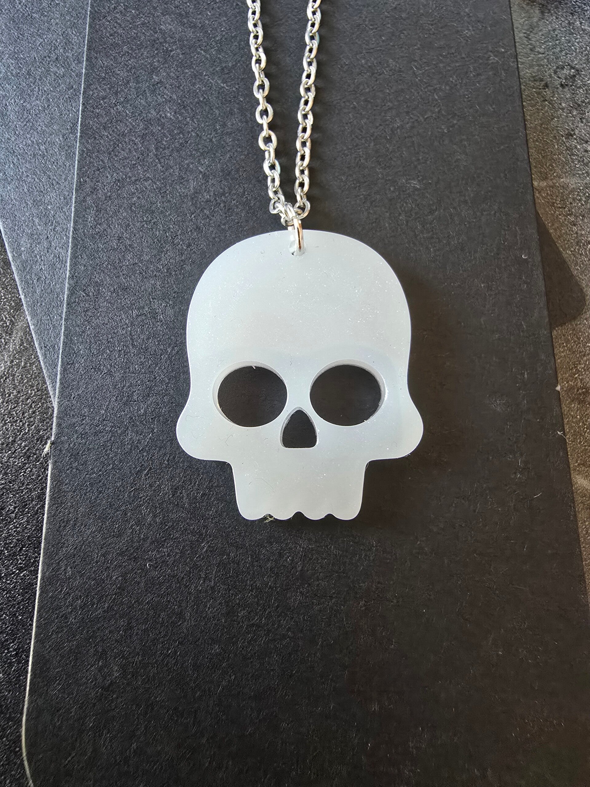 Voor wie durft op te vallen! Deze handgemaakte ketting met een witte schedelhanger combineert stoer en stijlvol in één. Elk exemplaar is uniek, waardoor het een edgy en persoonlijk sieraad is.
