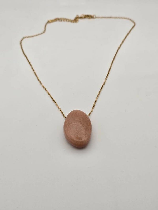 Heb je behoefte aan wat extra warmte en positiviteit? Deze prachtige ketting draagt een organisch geslepen Zonnesteen. Zoals de naam al zegt, draagt deze steen de krachtige energie van de zon met zich mee.