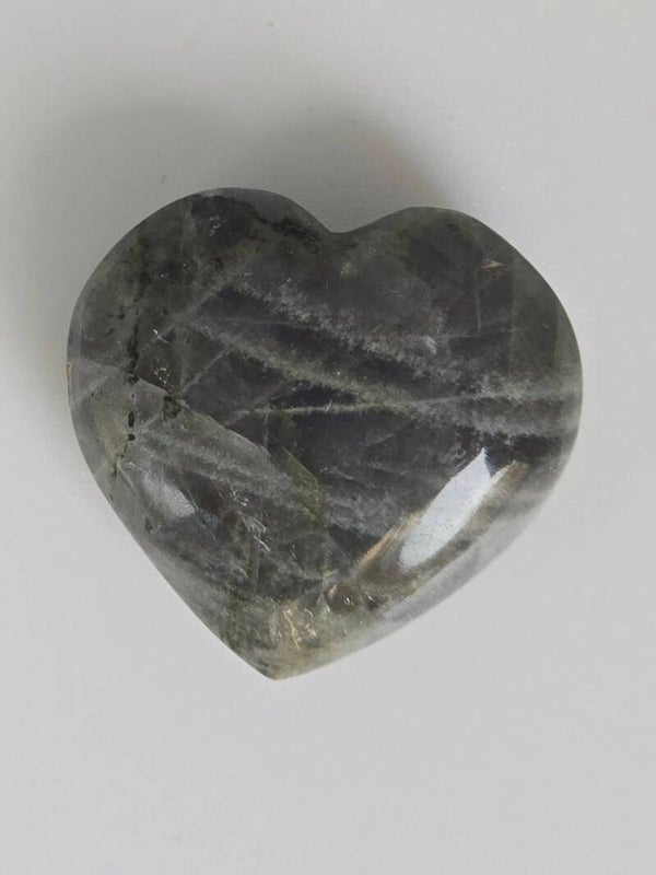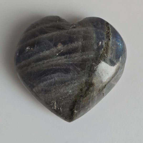 Breng magie en emotionele bescherming samen met dit schitterende, gepolijste Labradoriet hart.