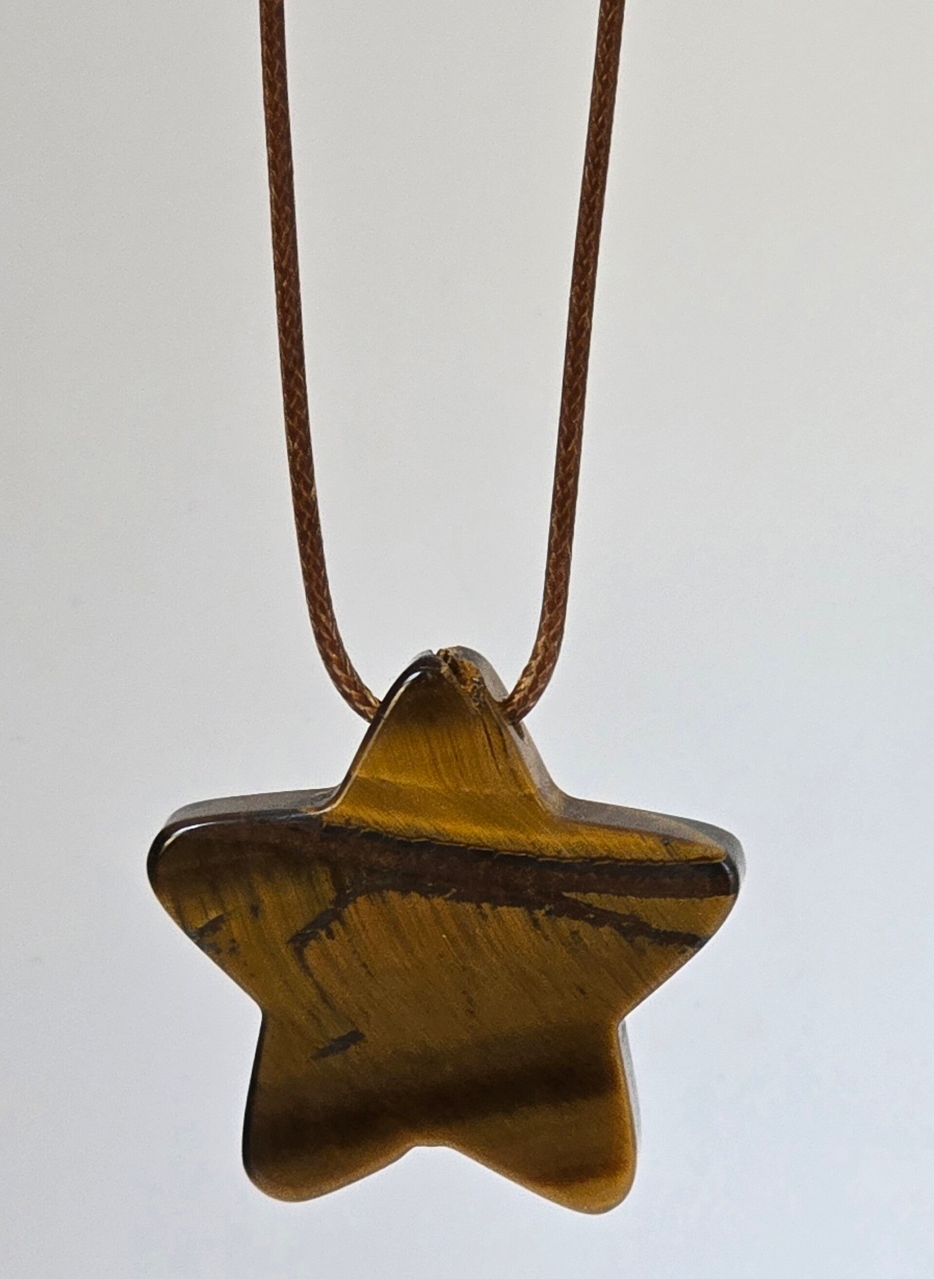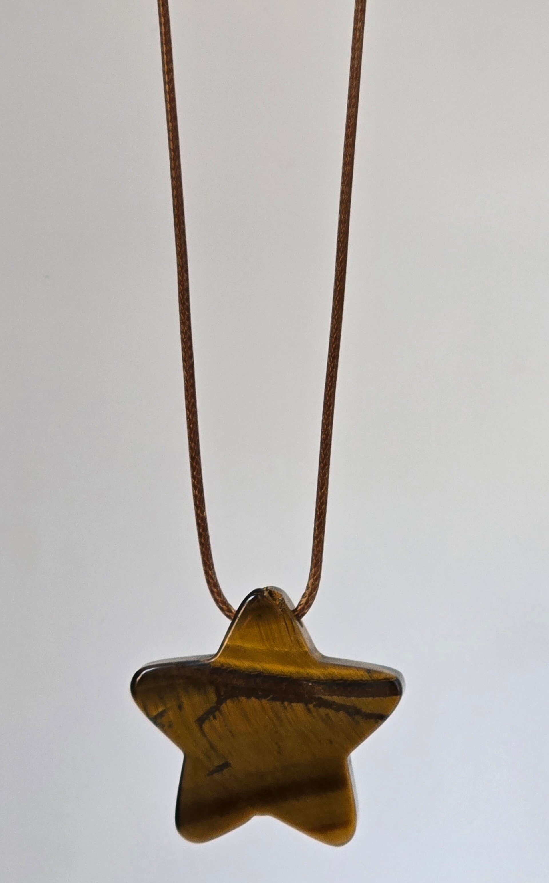 Stralende sterhanger van natuurlijke Tijgeroog met een prachtige gouden glans. Deze krachtige beschermsteen staat symbool voor zelfvertrouwen en focus. De hanger hangt aan een passend bruin koord en is een unieke eyecatcher vol positieve energie. Perfect als persoonlijk symbool of bijzonder geschenk.